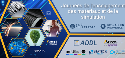 Les 1 et 2 juillet 2026, ADDL et ANSYS organisent un évènement pour l'enseignement des matériaux et de la simulation en collaboration avec : IUT Aix Marseille, Seatech Toulon et Polytech Marseille Dates : 1 et 2 juillet 2026 Lieu : Site Gaston Berger, IUT de Aix-en-ProvenceL'évèn...