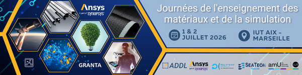 Les 1 et 2 juillet 2026, ADDL et ANSYS organisent un évènement pour l'enseignement des matériaux et de la simulation en collaboration avec : IUT Aix Marseille, Seatech Toulon et Polytech Marseille